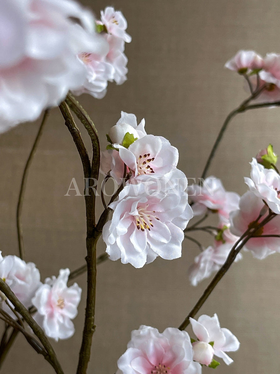 Each blossom on this branch carries a soft pink hue, reminiscent of a blissful paradise. The gentle, pastel tones of the petals seem to whisper tales of springtime and renewal, evoking feelings of warmth and joy in those who behold them.