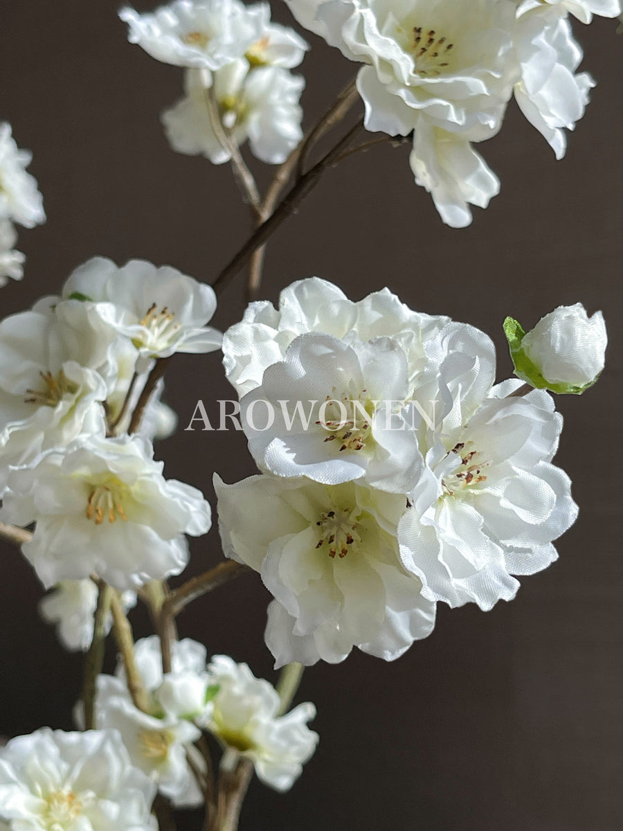 Each delicate blossom adorning the branch boasts a pristine white hue, evoking visions of a serene paradise where purity reigns supreme. The petals, like delicate whispers of silk, unfurl gracefully to reveal a heart of subtle beauty and understated splendor.