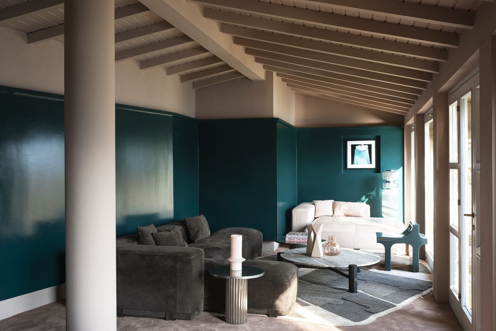 The Allure metal coffee table enhances living rooms with an interpretation of the circle in three different scales, balancing these with a single rectangle concept. A contemporary, unexpected interpretation of more conventional living room furniture geometries that invites us to play with the senses. Beneath the antiqued metal surface with shiny and matt hues, in the pleats of the base, a glimpse of functional and stable Doric columns which, up close, recall the conceptual architecture of 20th century northern Europe.