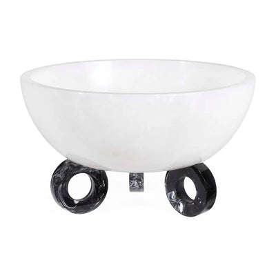 Perched on top of three thick rings, our disc bowl is the mesmerizing twist on classic black and white that every modern tablescape needs. Our Como vessels pair dimensional tones with bold Memphis-y geometrics. Each piece is hand-poured to create a unique marbleized finish, then polished to luminous perfection. Style them together to create a monumental moment.