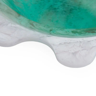 Our mesmerizing Como collection pairs juicy, dimensional color with bold, Memphis-y geometrics. Hand-poured to create a unique marbleized finish, each piece is then polished to luminous perfection. Featuring swirling seafoam green and white ripples around the brim. One-of-a-kind shine for any modern tablescape, and even more monumental when it’s styled with the rest of the collection.