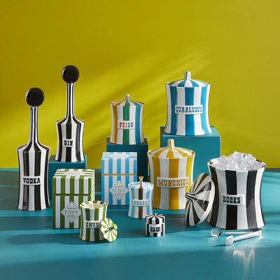 Our iconic Vice canisters reimagined as the spirited decanters your libation station needs. Parade your pours in hand-painted porcelain with a graphic black and white finish, each featuring an exaggerated silhouette with a tall neck and oversized ball stopper. Cluster the collection on your counter or bar cart along with our Vice Ice Bucket (and a few canisters for snacking while sipping!). Fillable with any standard shot pourer.