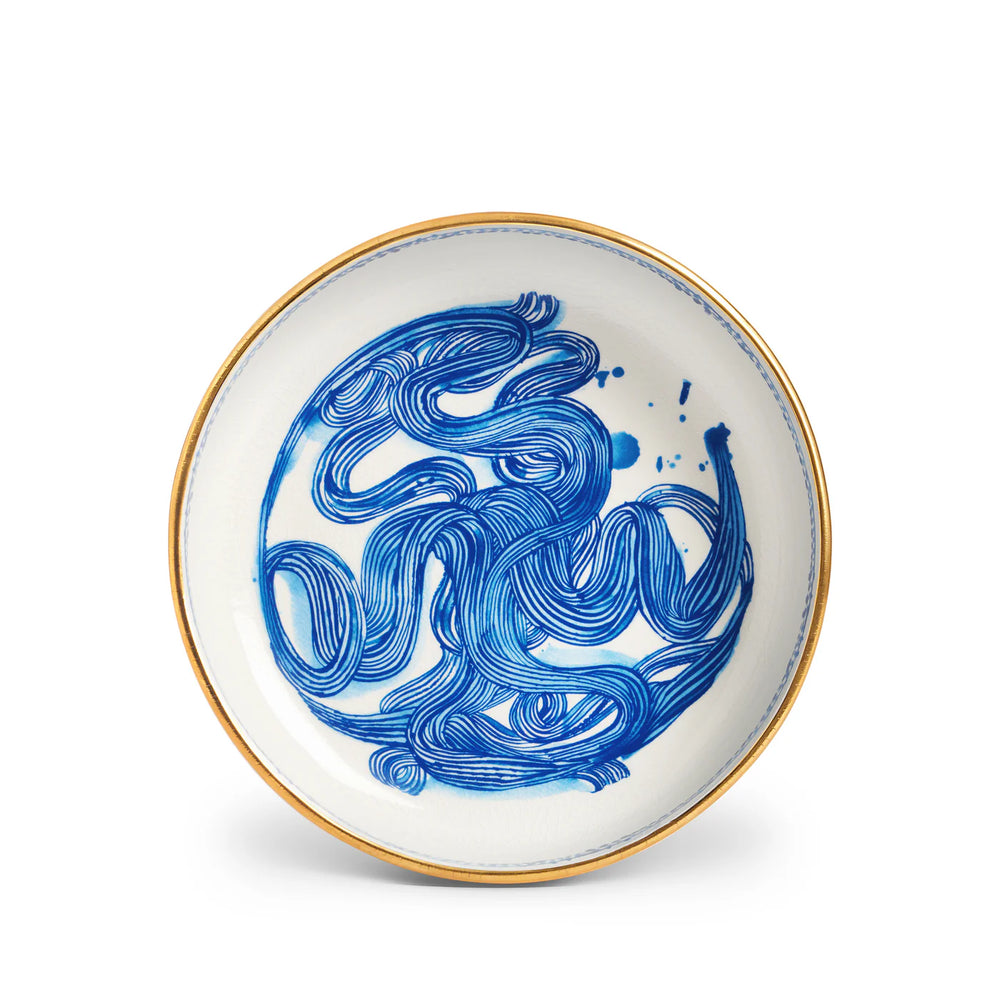 The Medium Bowl is a striking testament to Ruan Hoffmann's artistry, where contrasting colors and opulent details bring his playful vision to life. Each bowl's exterior gleams in L'OBJET's signature 24k crackled gold, imparting a refined, tactile luxury that contrasts beautifully with the vibrant hues within. These bowls masterfully balance sophistication and whimsy, making it an unforgettable addition to any collection and a true reflection of L'OBJET's dedication to craftsmanship.