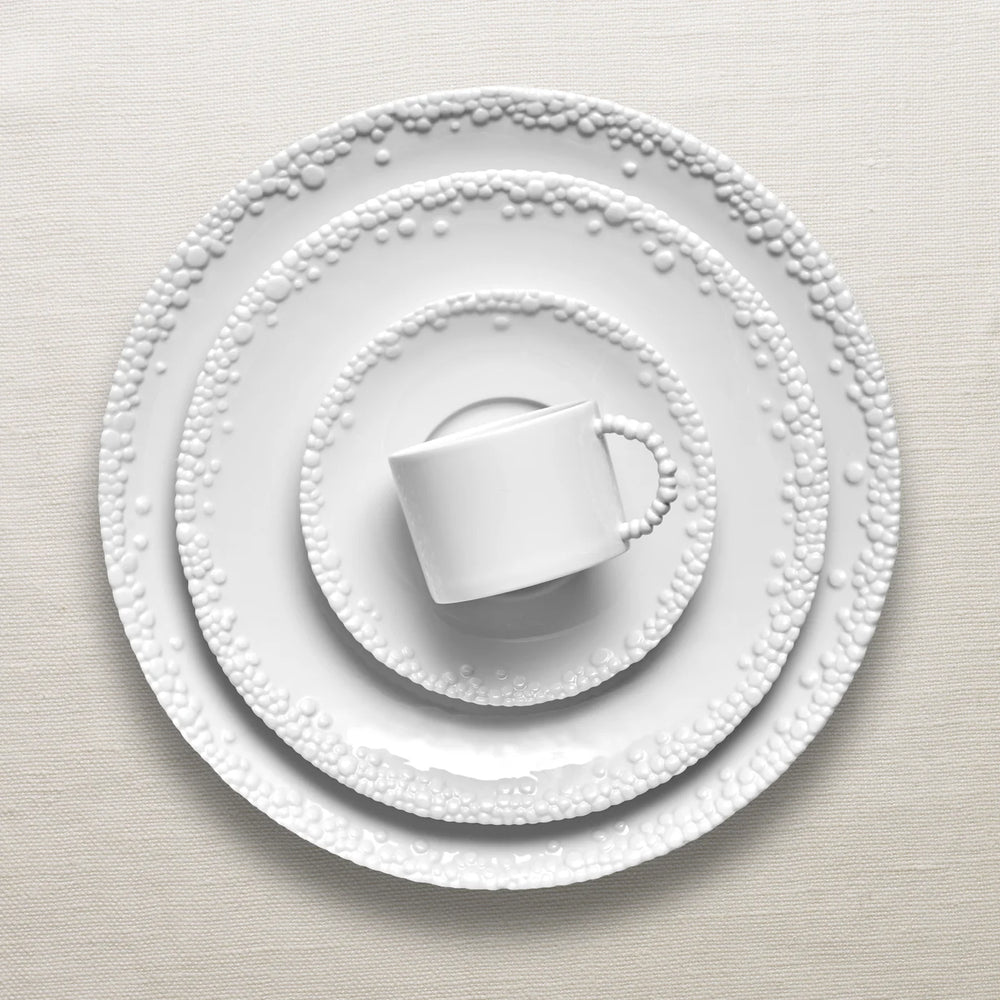 Fine Porcelain dinnerware featuring an intricate and organic pattern reminiscent of desert pebbles and of the endless stars in the desert sky.