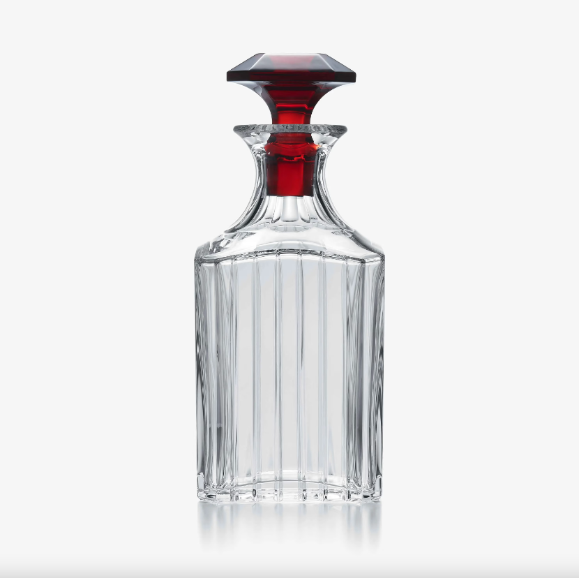 Baccarat unveils a collection of its iconic decanters crowned with a red crystal stopper, the Maison's signature color. Symbolizing fire, love, and passion, red is an energizing hue that stimulates the senses. With its deep intensity, Baccarat red is the result of fusing clear crystal with 24-carat gold powder. Like Baccarat chandeliers adorned with a distinctive red crystal tassel, these Harcourt, Harmonie, and Louxor wine or spirit decanters embody refined craftsmanship and add a festive, joyful touch of color to any occasion. The Harmonie collection is a contemporary icon for mixology enthusiasts and lovers of rare whiskies. With its vertical lines and pure form, the Harmonie Whisky decanter is distinctive for its timeless elegance. Its cut crystal reveals a singular magic, reflecting the colors of your favorite beverages.