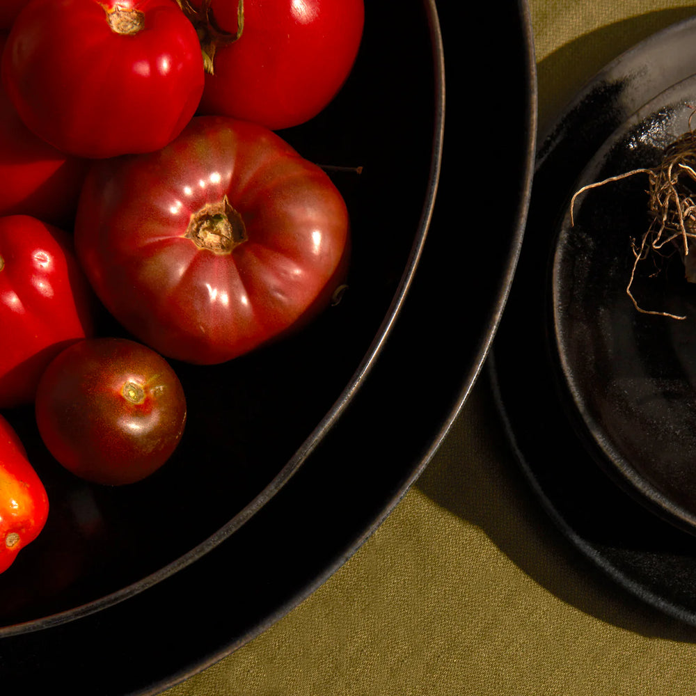 Our porcelain Terra coupe bowls are hand-crafted and glazed in our Portuguese atelier. Organic shapes are refined with glazed finishes that bear the idiosyncrasies of their namesake materials: wine, leather, stone, iron, and seafoam.