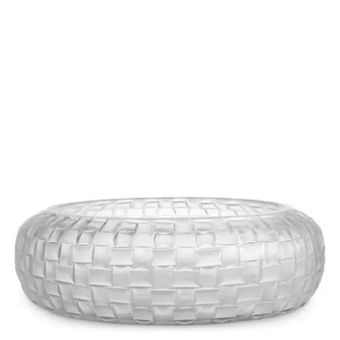 This iconic glass bowl boasts a grey finish and meticulous hand cut details, forming a woven pattern that captivates and enhances every room, offering timeless beauty to Eichholtz's exclusive interior design solutions.