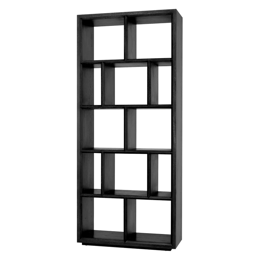 Characterised by its geometric design, this contemporary étagère in charcoal oak veneer perfectly blends in with urban modern interior schemes.