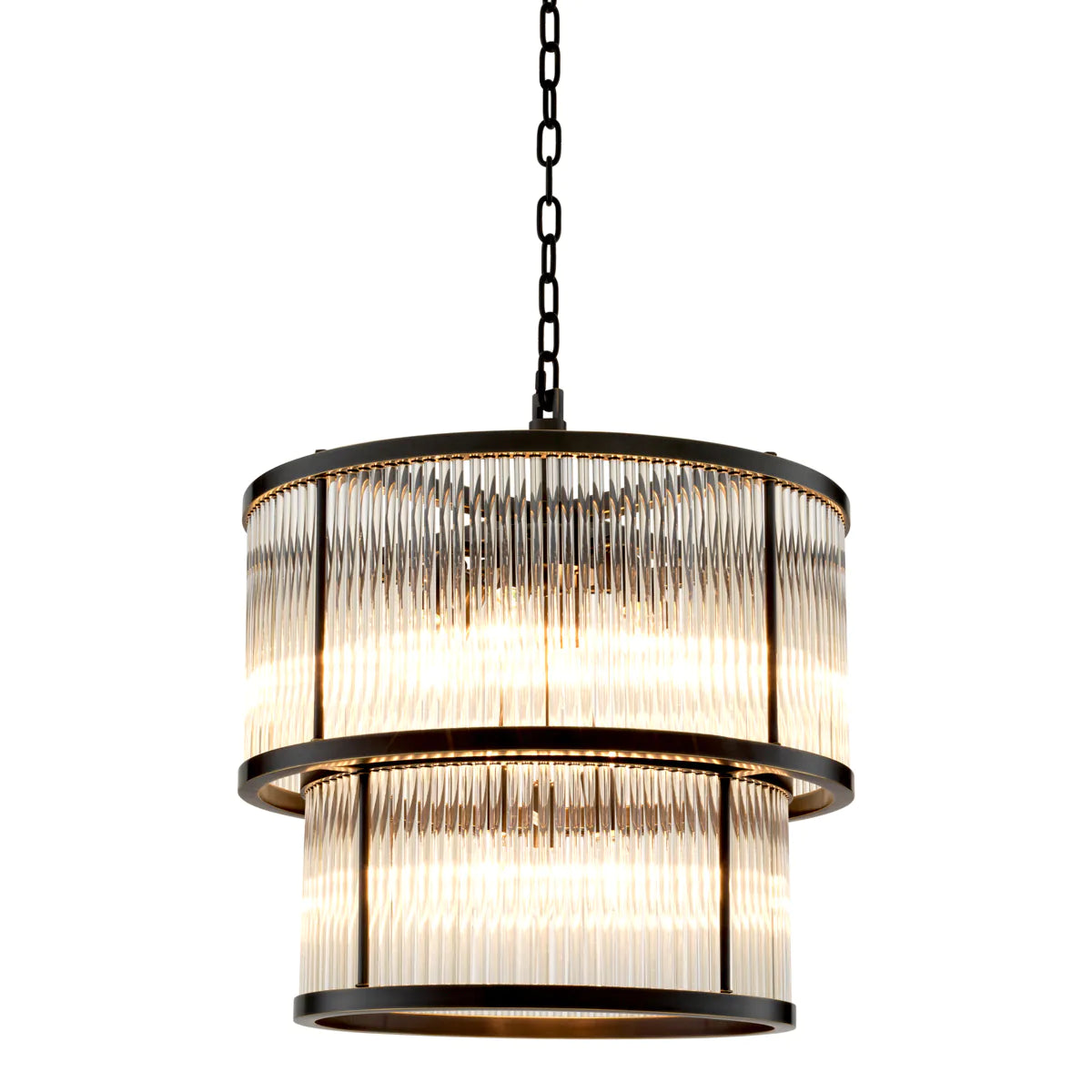 Set the mood for mellow moments with the Art Deco inspired Pasadena Chandelier. By pairing classic design with contemporary aesthetic, this refined chandelier exudes timeless appeal. The drum shades with bronze highlight finish feature vintage glass rods for a soft and warm glow.