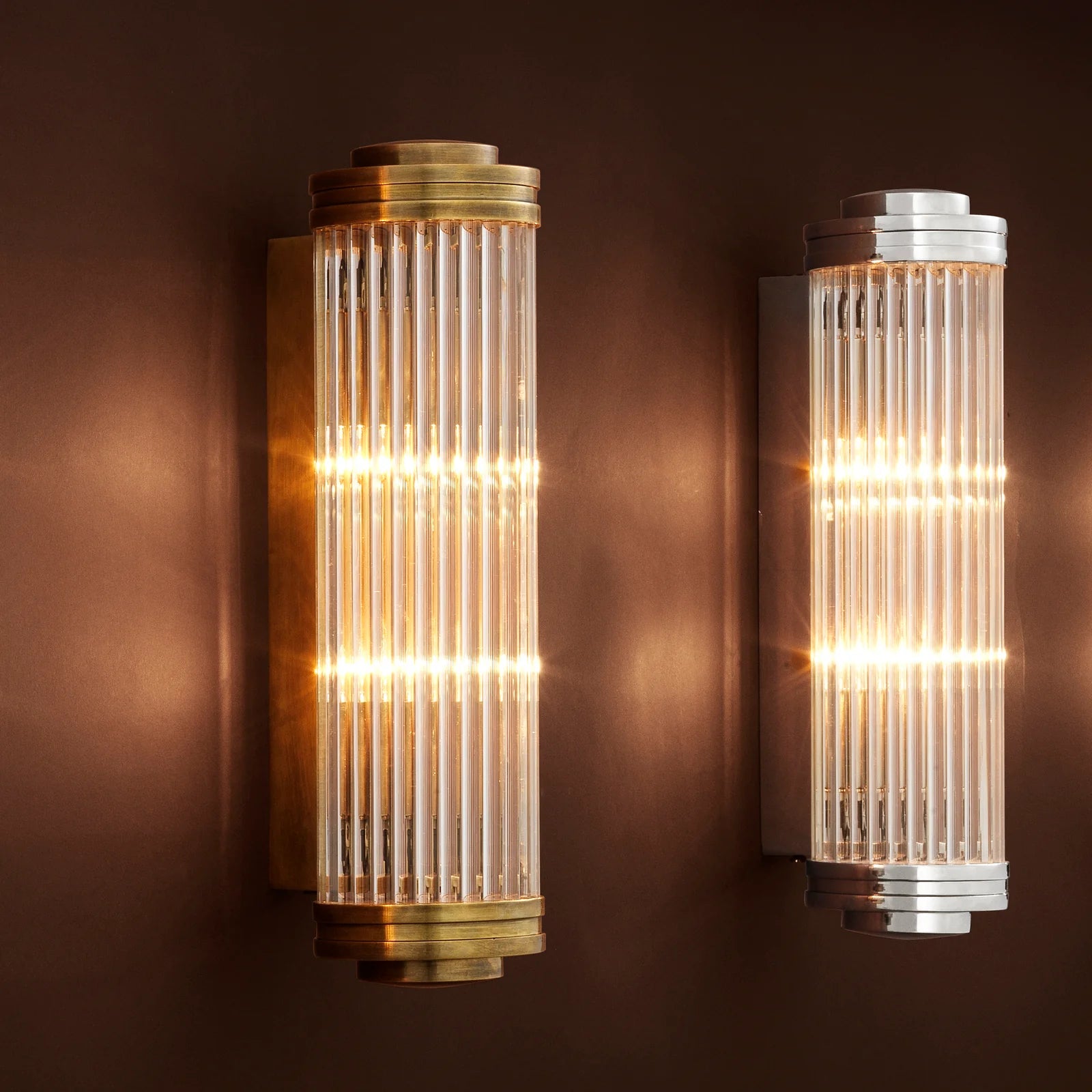 Bathe your interior in a soft and warm glow with the vintage brass finished Gascogne L Wall Lamp, featuring a shade of ribbed and bevelled clear glass. Inspired by Art Deco theater lamps, this alluring sconce will add cosmopolitan style and glamour to your home decor.