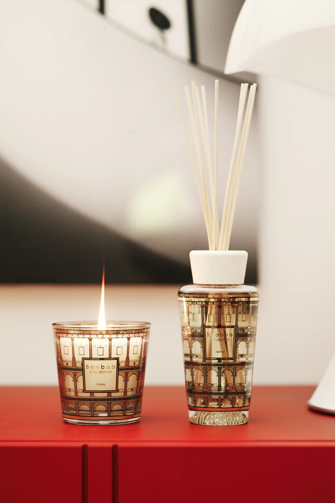 The Roma gift box is covered with a gold and colored silkscreen that references the mythical architecture of the Colosseum. We chose to reinterpret it with pomp, giving it a rich and sophisticated look where gold and colored friezes recall the ceilings of Renaissance monuments.
