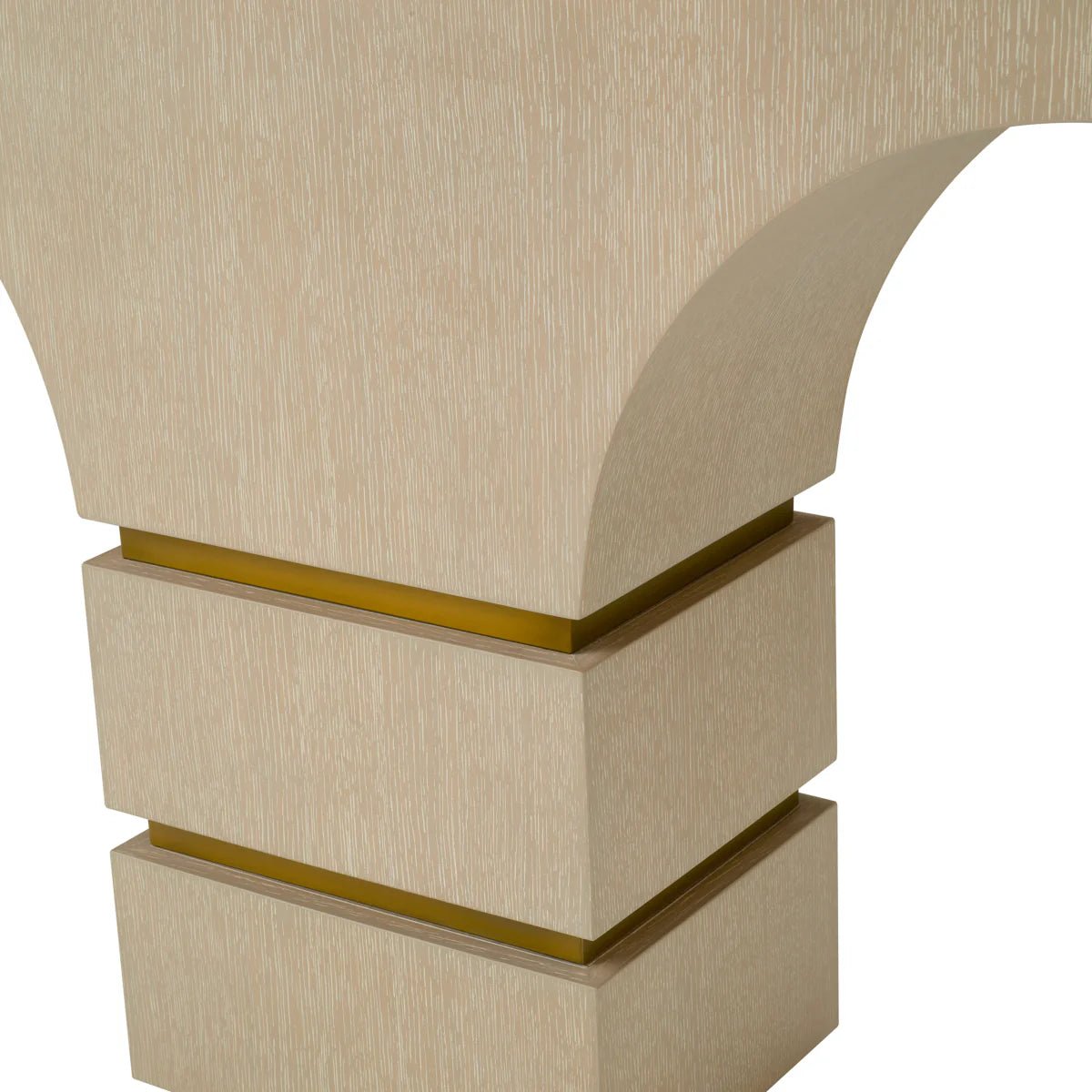 Elevate your interior with the Console Table Thaddeus, featuring a chic washed oak veneer and sleek brushed brass finish. This refined piece beautifully balances contemporary design with timeless appeal, capturing the essence of luxury furniture. Perfect for discerning tastes, Thaddeus offers a sophisticated focal point that transforms any setting into a realm of elegance.