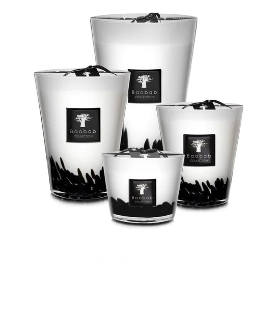 The Feathers scented candle is an object of decoration perfect for all interiors. Its black inlays placed in hand-blown glass give off a feathered effect. When lit, this candle’s flames delicately reveal a warm and elegant light.