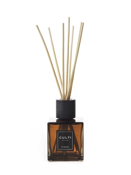 Sculpted, square-shaped bottles in thick glass with Dark Brown maple wood cap. The bold, distinct features of the CULTI DECOR line add a touch of character to any room. Ficum Blu: a summer afternoon of our childhood: an afternoon snack of freshly picked juicy figs, after a long bicycle ride in the sun-parched countryside.