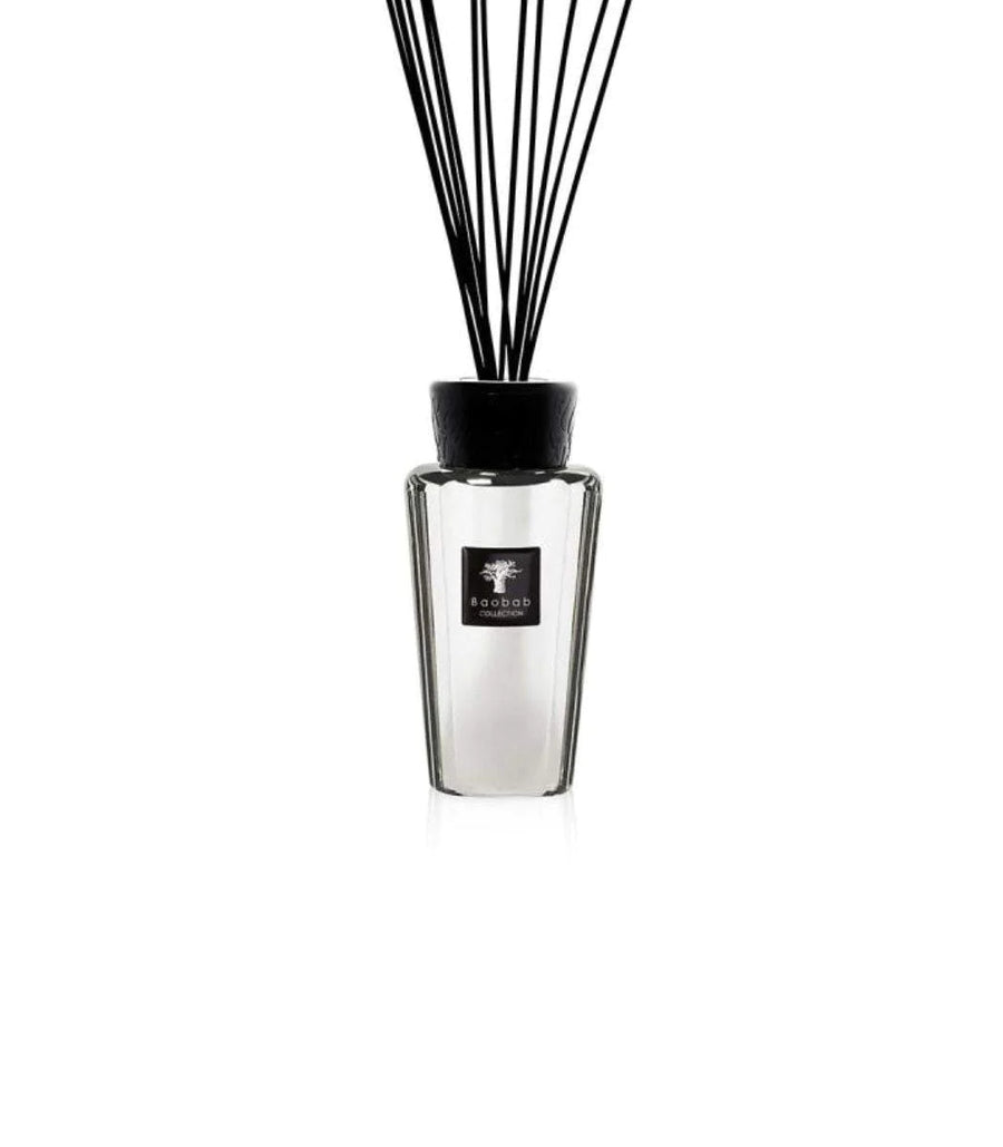 The Platinum home fragrance diffuser is a bottle delicately covered with a metallic paint reminiscent of the precious metal whose name it bears. Finished with a black bakelite cap engraved with a root motif, this perfume diffuser is a truly beautiful object.