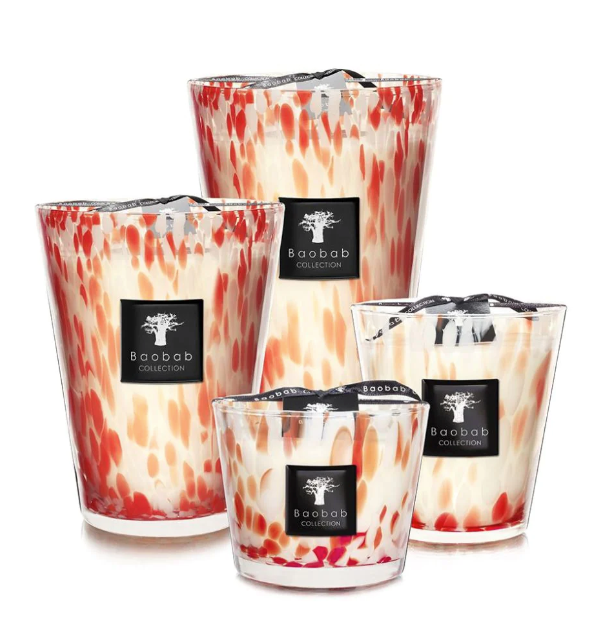 Covered in delicate touches of coral on hand-blown glass, the Coral Pearls scented candle is an object of decoration that will shimmer in your interiors as it releases an enchanting perfume. This candle, with its reference to the color of precious corals, will fit perfectly into your vacation homes.