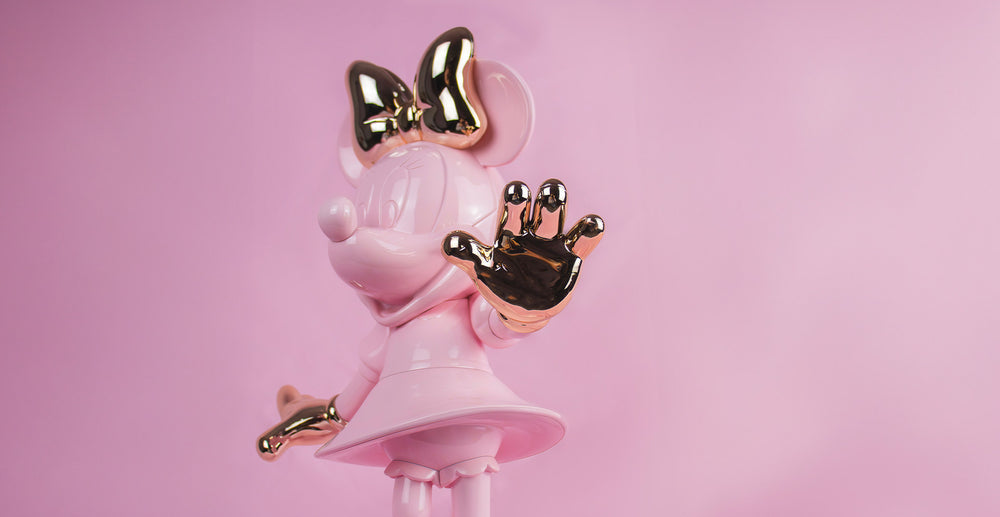 Each piece celebrates the iconic mouse, the beloved companion of Mickey, symbolizing charm, elegance, and joy. These medium-sizes sculptures capture Minnie’s playful spirit and mischievous personality while adding a modern touch to her classic design. The collection features unique variations, blending chrome with vibrant colors, giving each sculpture a distinctive style that perfectly integrates into any decor.