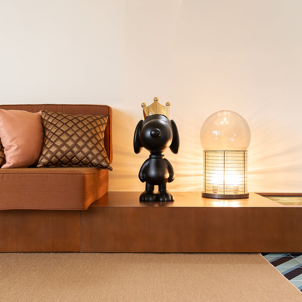 This creation features the famous crowned beagle, celebrating his festive and joyful spirit. The sculpture, available in white and gold, combines sophistication with playful charm, making it a true work of art.