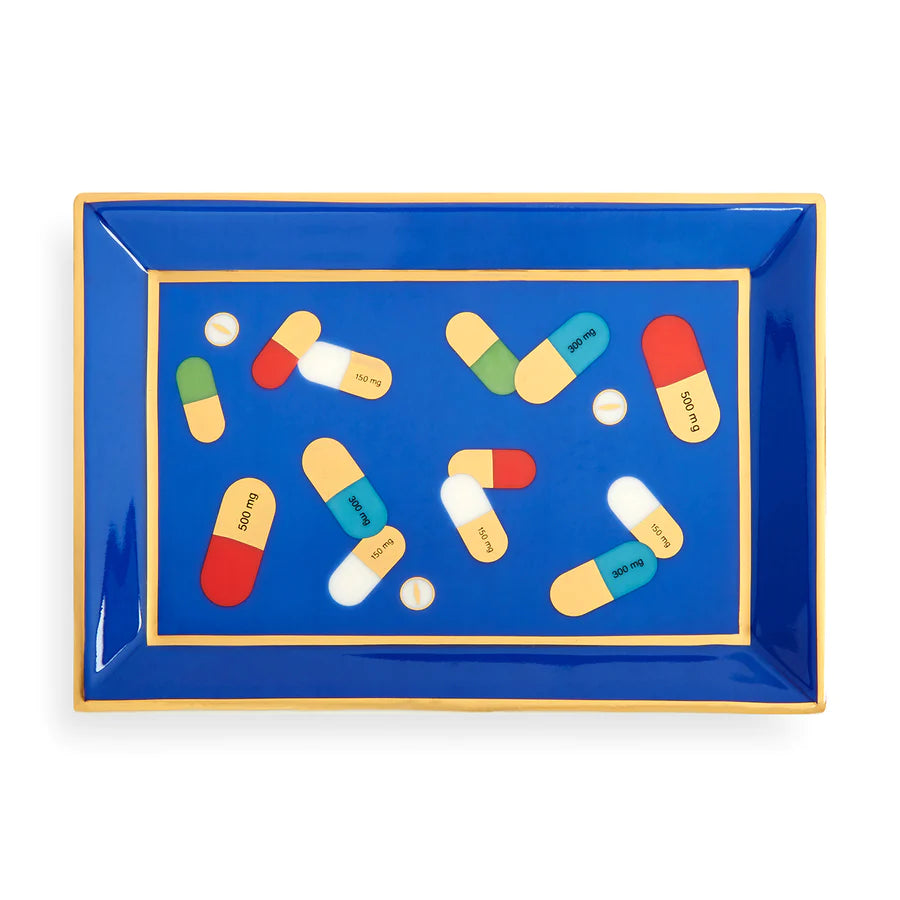 Sexy, seductive and saucy, our petite trays are the little quelque chose you didn't know you needed but absolutely do. Add a kiss of tough glam to your bedside, bathroom, or tabletop. Crafted from high-fired porcelain with real gold accents. Indulge yourself or give one as a gutsy gift—our Full Dose set comes packaged in a nifty box.