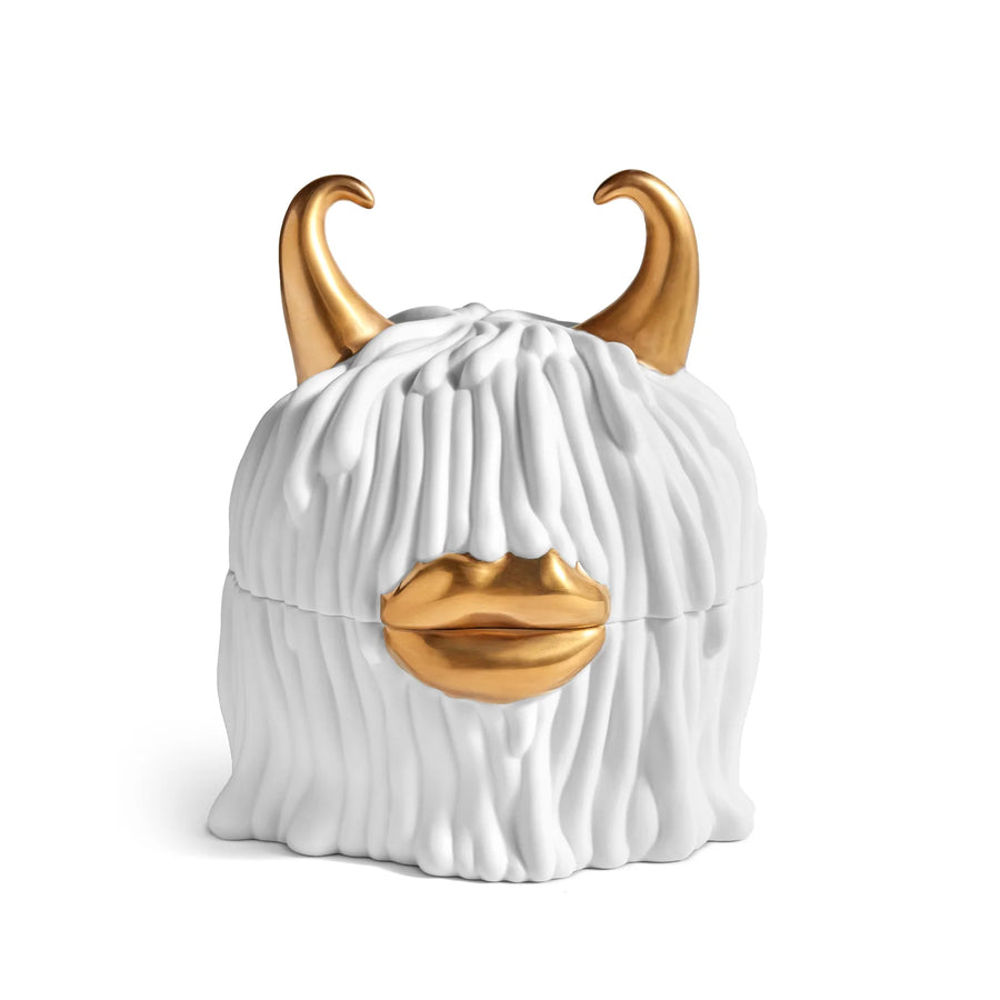 Lynda is an exquisitely decorated yet secretive creature, who hides treasure in her belly. Designed to create an unforgettable serving ceremony. Available in black or white porcelain and in 24K gold + pink - limited edition of 500.