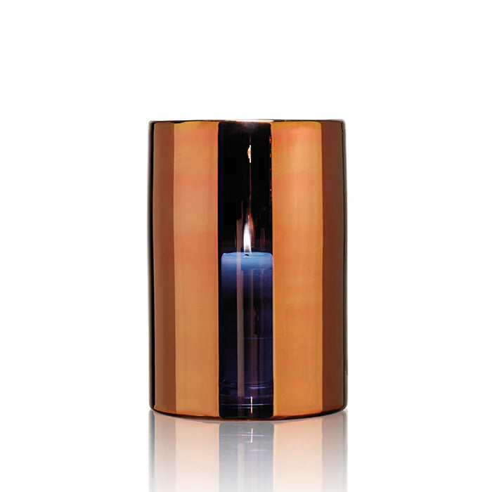Add a luxurious finishing touch to any corner of your home with this beautiful lustrous piece. Hurricane Classic is hand-blown in Bohemia, home to the world's best glassblowers, and painted by hand in metallic colours, which gives the lamp a vibrant and opulent glow. The Large lamp allows you more flexibility of design as it also can be used to create a beautiful centerpiece. As stunning during the day as at night.