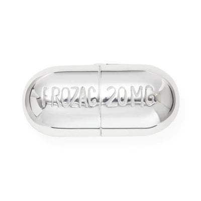 We've taken our longtime love of pharmaceuticals to a new level of luxe: cast in solid brass, our hinged pill boxes are just what the decorator ordered—a dose of glamour in warm hand-polished brass or a pop of jewel-like sparkle in shining silver plating. Each box top is laser-etched with an mg prescription. The perfect provocative touch for your tables-cape or hip hideaway on your bedside table.
