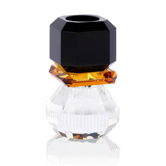 Handcrafted from black, clear and amber crystal, and featuring sharp geometric forms, the Phoenix tealight holder is a subtle vessel that works well when displayed independently or as part of a collection on a table.