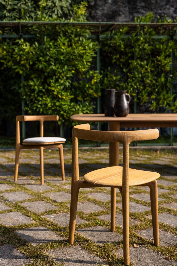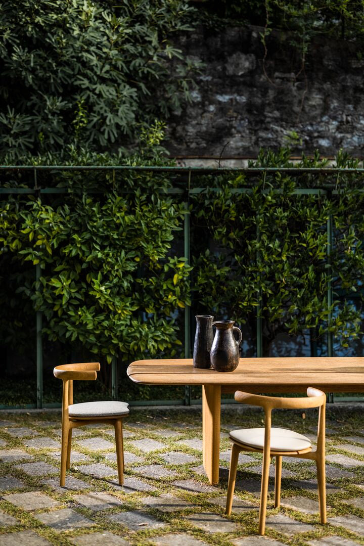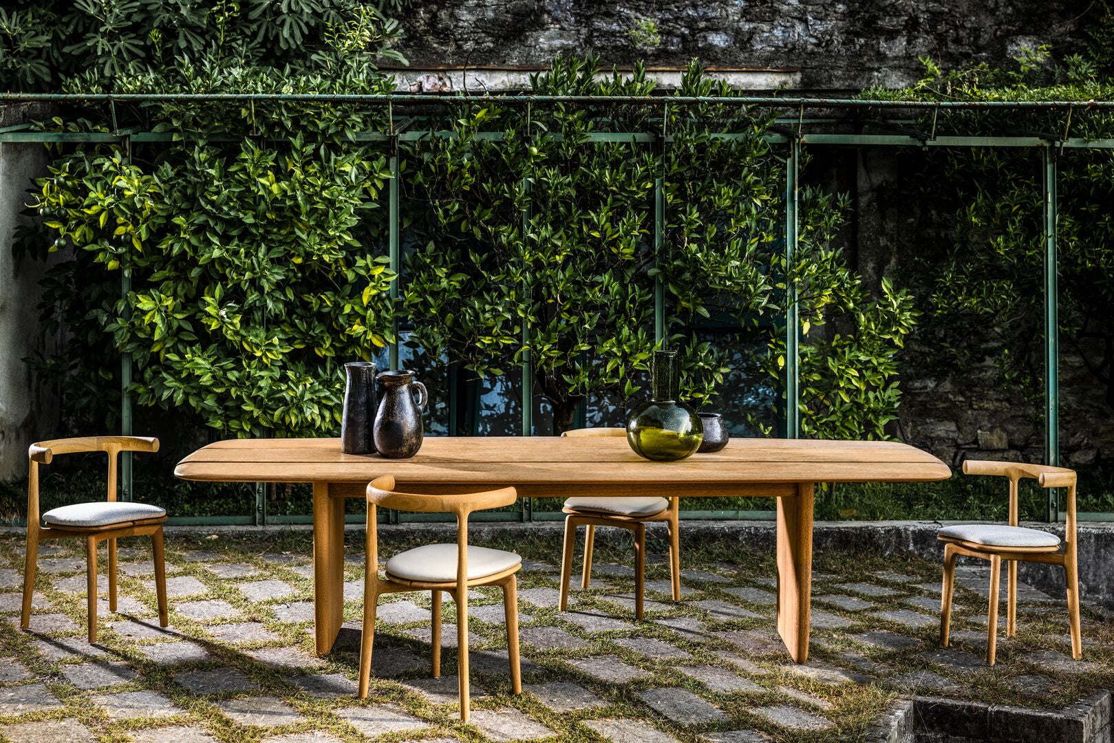 The Himba collection redefines domestic and outdoor spaces with ethnic-inspired chairs in natural, organic shapes that recall the typical motifs of African design and art. Delicate and harmonious, the solid wood seats designed by Roberto Lazzeroni elevate interiors in the version with leather cushions and can also be used on the terrace and in the garden when upholstered in weatherproof fabric or leather.