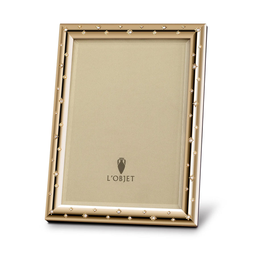 Shimmering frames, meticulously handcrafted with Swarovski crystals, 24K gold and platinum plating, beveled glass, satin lining and Italian leather and suede backs with beautifully detailed closures. Presented in a luxury gift box.