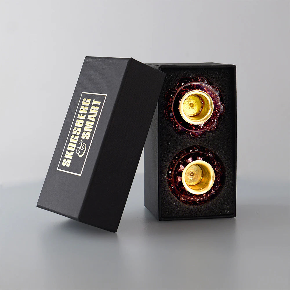 Boule Petite is an elegant candleholder designed for a freestanding candle. Each set includes two pieces, beautifully presented in a gift box. Every Boule Petite is hand-blown, featuring a brass holder nestled gracefully within the glass.