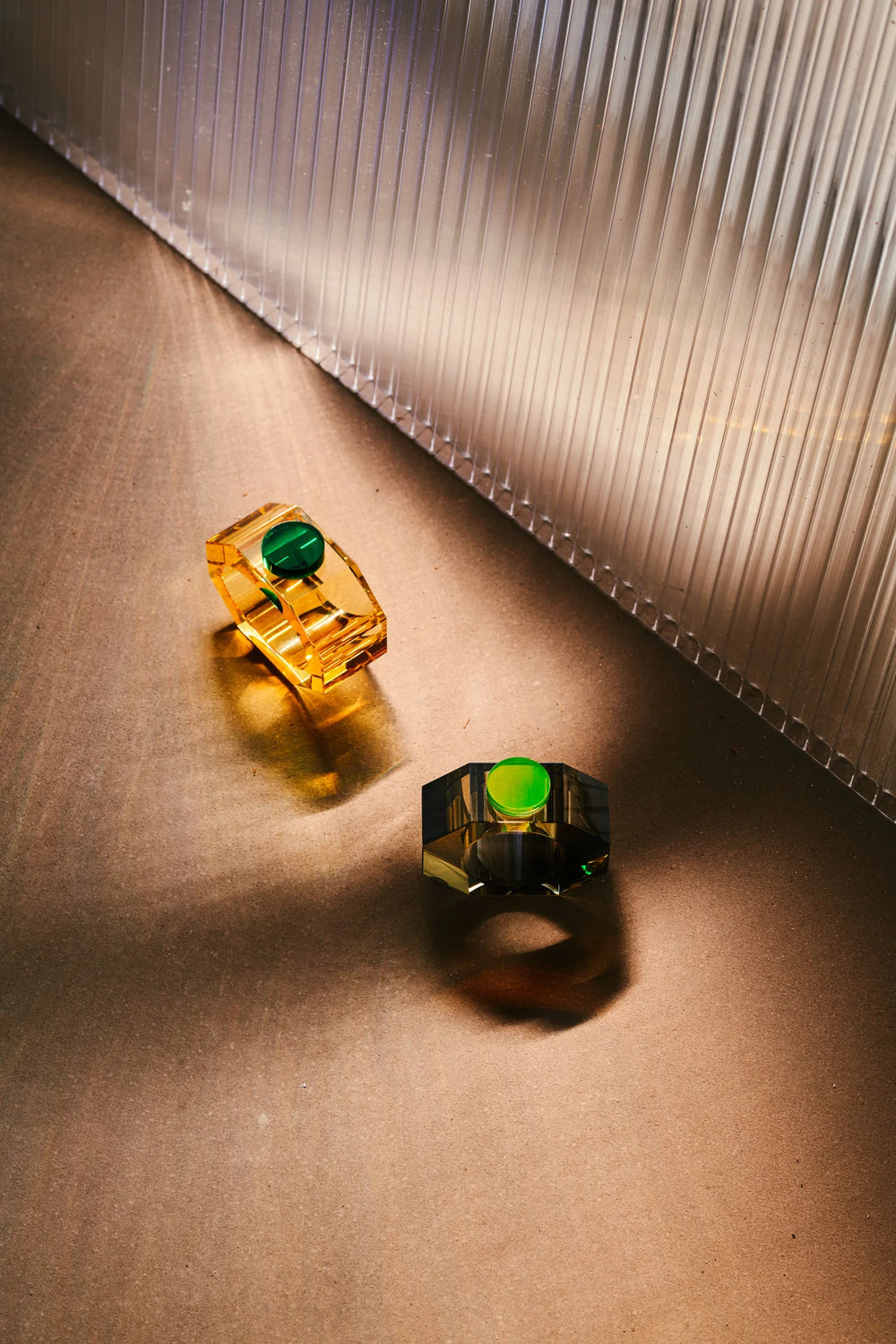 Pair of Shelby - Napkin Rings - Yellow/Green & Grey/Neon Yellow