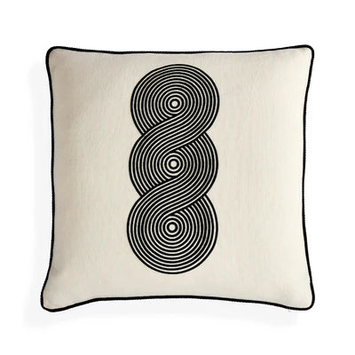 Our bestselling Pompidou cushions, now in single poppy tones on white. Pairing 70s inspired patterns with dimension for added oomph, each style features colored linen embellished with a raised satin stitch and a corded edge. Group them for a strong statement, or pop one wherever your room needs a boost.