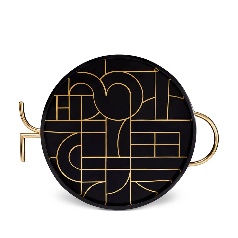 Designed with brilliant rule-breaking designer Kelly Behun, a surreal decorative tray that offers an elevated, whimsical experience. Beautifully crafted from black resin inlaid with a maze of brass.