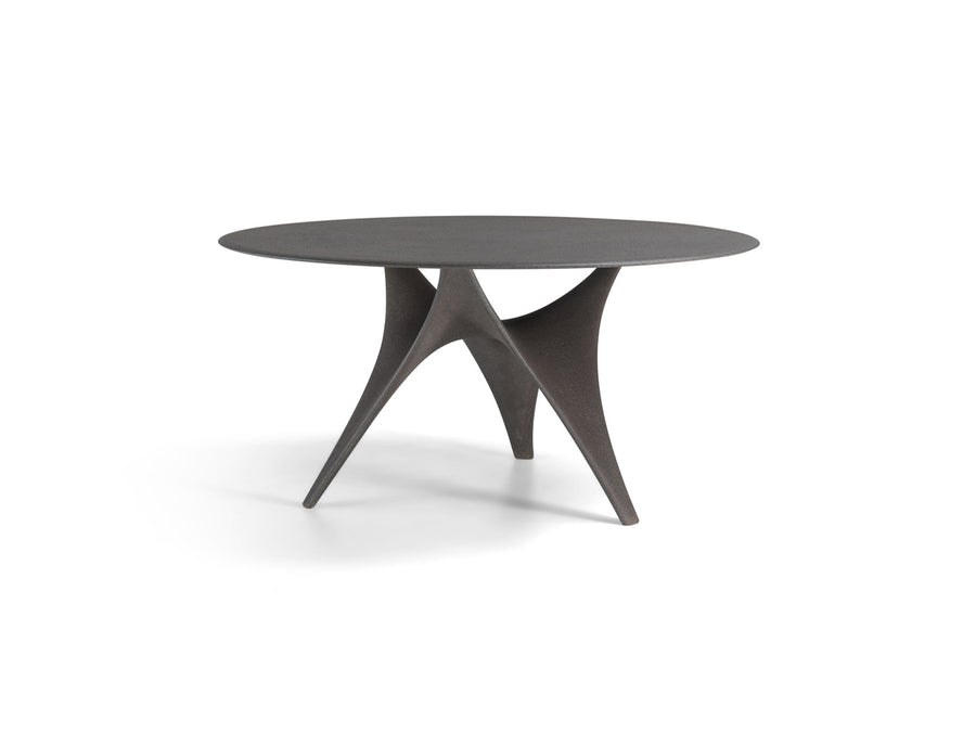Foster + Partners' Arc sculpture table joins the outdoor proposal with an all-cement finish.