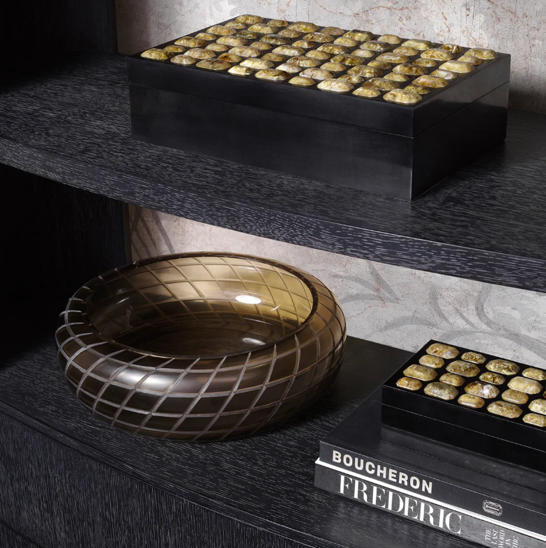 Its handcut patterns create delicate textures that capture natural light, offering a nuanced play of shadow and warmth, perfect for enriching spaces with timeless, understated elegance.