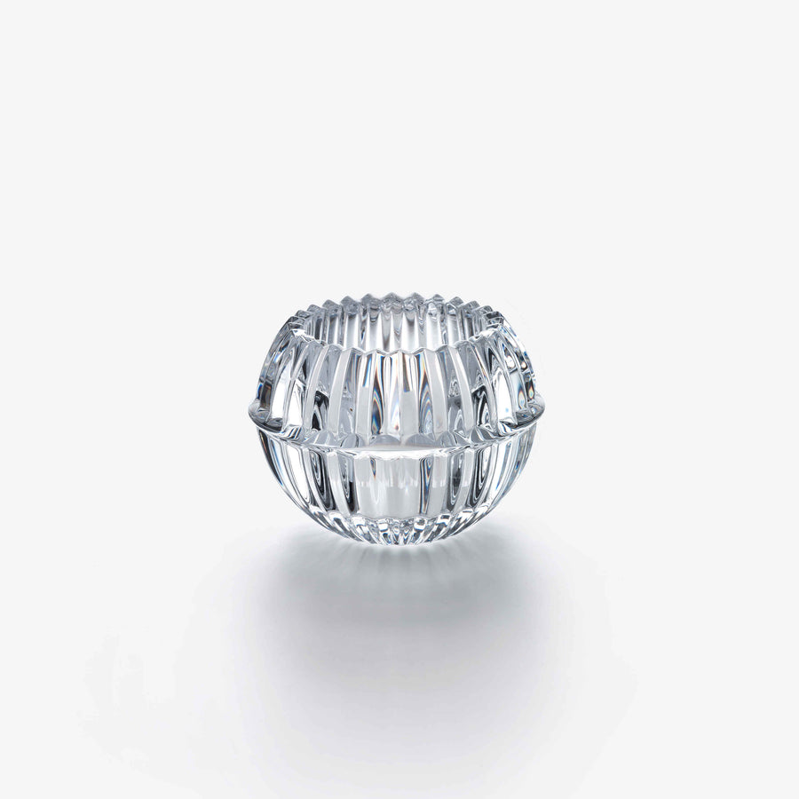 Baccarat’s Clear crystal Mille Nuits votive glistens spectacularly, both with and without the incandescence of candlelight. The beveled circumference of the Clear crystal votive, gathered like petals, epitomizes Baccarat’s fine craftsmanship. The votive creates an incredible optical effect, one where the glinting crystal and the illuminated candle glow interplay resplendently, with the multifaceted crystal enhancing every fiery flicker against its ornately grooved framework. The name Mille Nuits is a reference to the 1001 Tales of The Arabian Nights, and thus to the world of the Orient. Designed by Mathias for Baccarat, the Mille Nuits collection extends to bar and stemware, and various lamps and lighting are also part of the overall Mille Nuits collection.